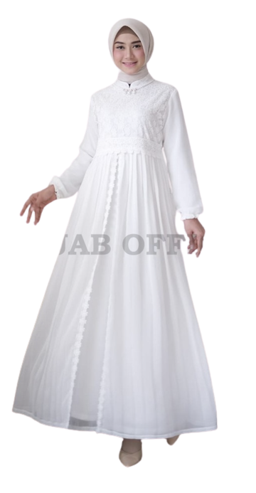 Supaya Anda bisa tampil lebih memukau, Agnes Fashion selaku produsen menambahkan cutting berlapis dengan aksen bunga di pinggirnya. Anda yang sedang mencari gamis putih untuk Idulfitri atau menghadiri pesta bisa mempertimbangkan produk ini.